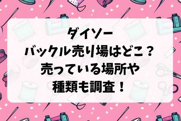 この記事では、ダイソーでバックルが見つけやすい売り場の場所、置いてある種類とサイズ、失敗しない選び方、見当たらない時の対処までを、初心者にもわかりやすくまとめました。
